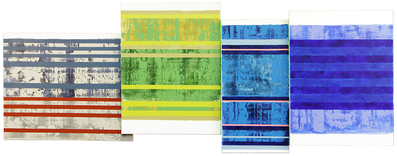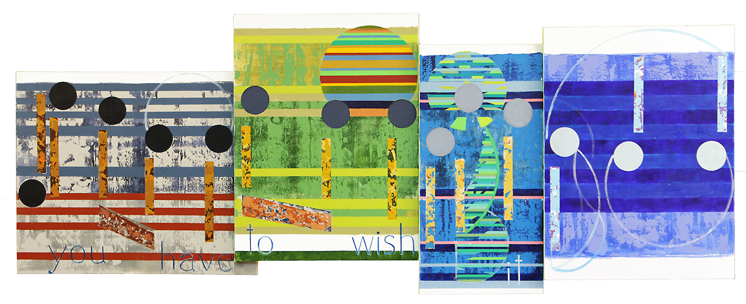 Up on the Roof is a Classic pop song from the sixties and on. There has been a major change that you may find hard to see in the full images.  In the first image  the first two canvases butt together.  In image two, and now three, what you are now seeing is that I have separated the first two canvases using  canvas two as a first step up.  Canvas three and four then are each another step up. This is my first artwork with four different levels.  The obvious reason that I am stepping these canvases is to follow the flow of the music. This artwork is going to look interesting, on a wall. Right now, it is hard to hold the work safely on the easels, without adding an arm to let the artwork move out from the support.