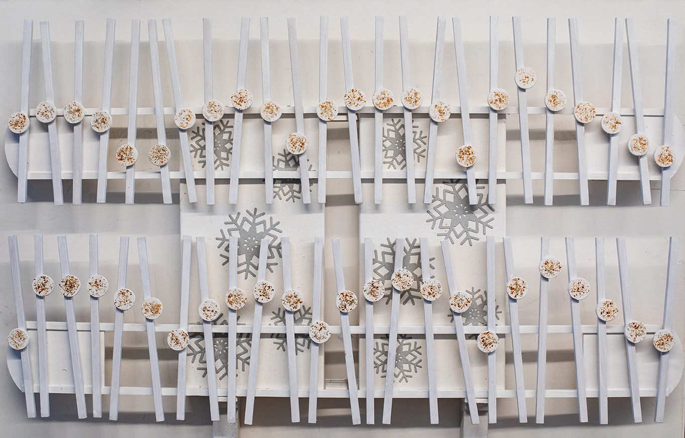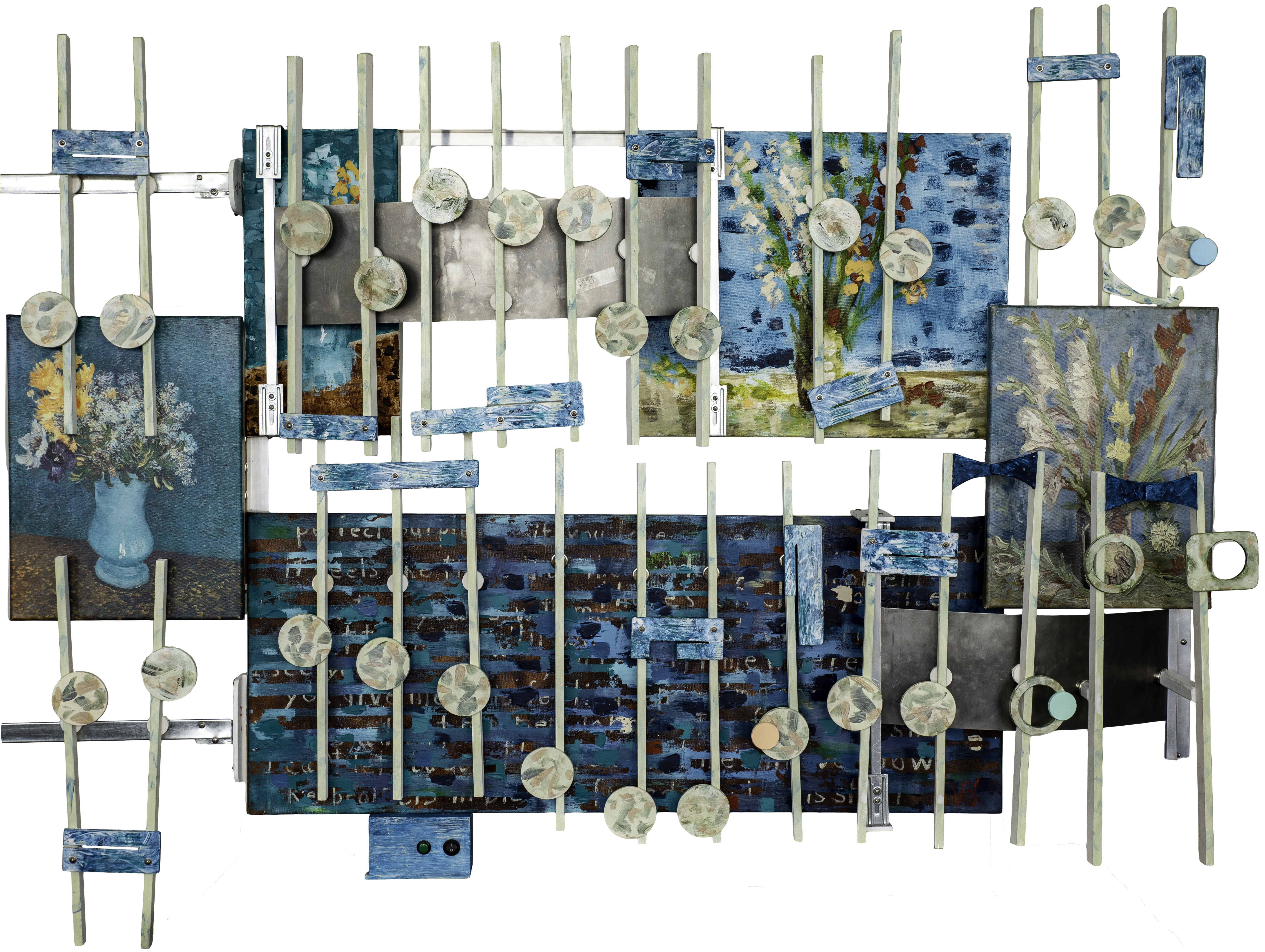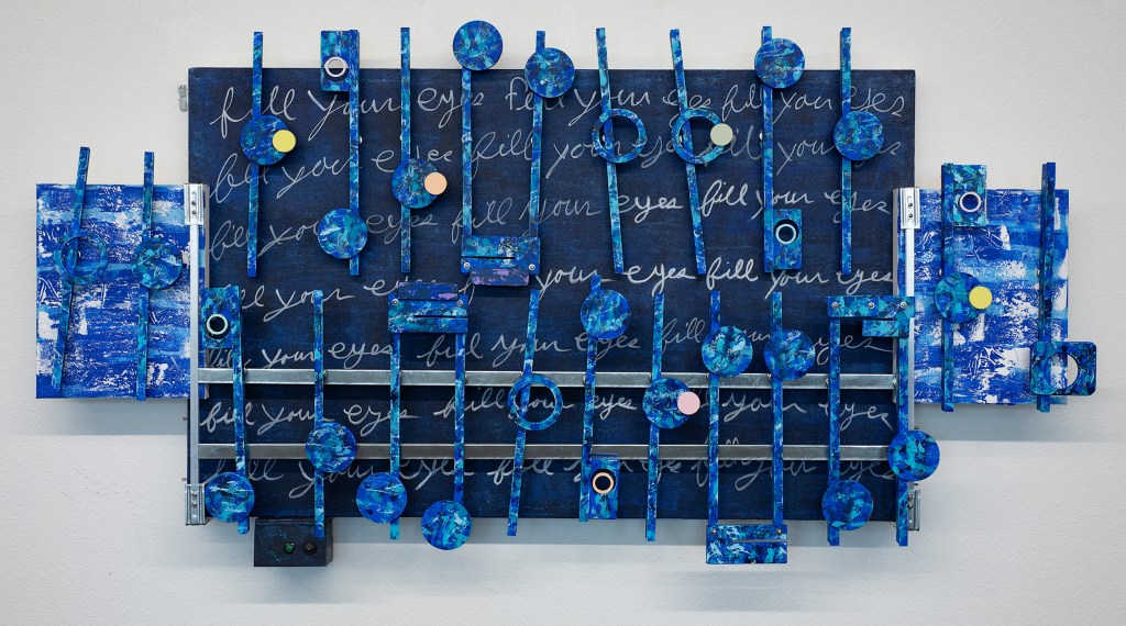 I signed Golden Slumbers on December 15th and the others on the 17th. The surprise is that I started and completed all three works in a month’s time. This entire process came into focus when I had in stock three 36 x 48 inch background canvases. The close musical relationship also helped. I could then use the same overall style and color plan tweaked for each artwork. By following the same designs of the previous 2023 artworks, I saved considerable time and effort. This then allowed me to build all three artworks together through each stage of production. The last motivation to complete these three works as quickly as possible was the drop off date of early January. Even though I completed all the preparations for this triptych for the upcoming exhibition, I have a surprise.