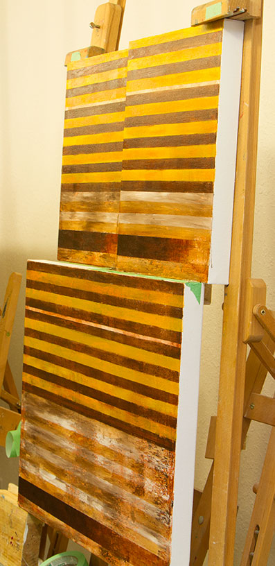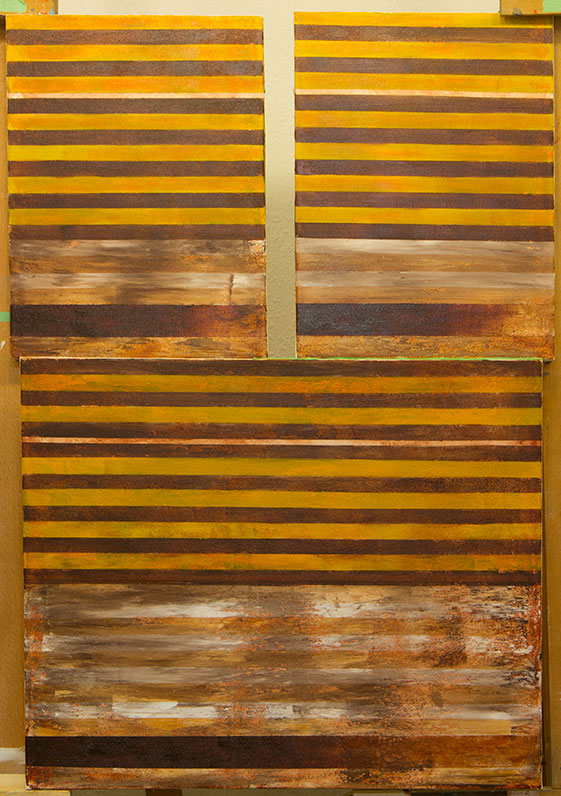 blindMelonAgain,  this is a difficult artwork to visualize because the three canvases you are seeing are physically on different levels You can see these steps better with this side view of No Rain.