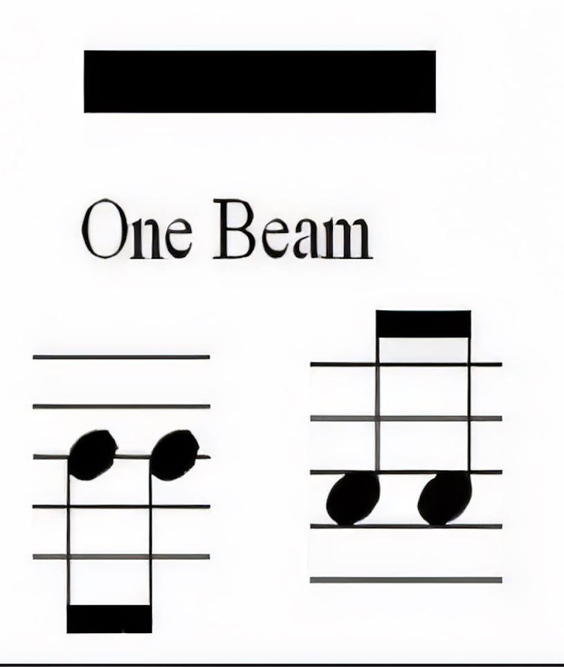 The image below is a typical of sheet music. The “beam” which is the wide bar that connects, in this example, two notes from sheet music.
