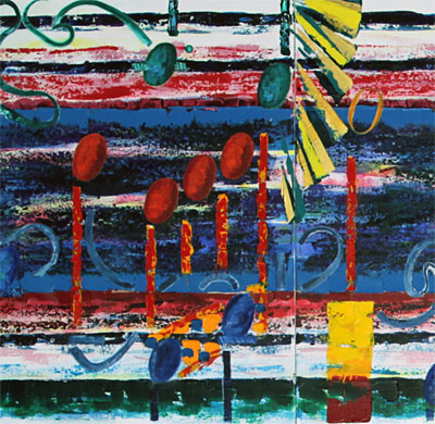 Stick inspiration but stick with the discrediting of it just happens. It does not, it is a job, it is work, and it is just fine that way. Did not Thomas Edison say 10 percent inspiration 90 percent perspiration? True, it starts with a feeling for the music and a colors that seem interesting. If that is inspiration, OK that works. But, after applying the first colors the feeling melts from the dream world, down the drain, to the reality world of what the hell are you doing, and how can this work be saved. That is when the truth begins to show up in the paint. Like the truth the artist paints have many layers.