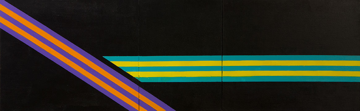 weBelong_1Here is the first image of a classic Pat Benatar song We Belong. This is prime Eighties music. This artwork consists of three canvas panels with a length of 52 inches by 16 inches in height.  Looking at this first image of We Belong, the background is a surprisingly sparse in comparison  with earlier works, with a solid black color dominating the artwork and not the stripping.   The influence for this first image for We Belong comes from the Bach Aria artwork I did for Japan.