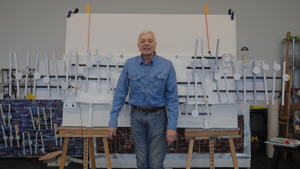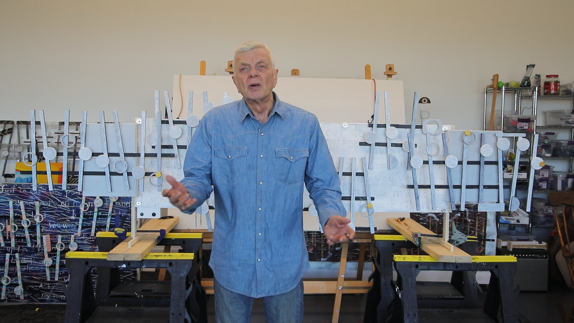 I never felt that this canvas hung well with the magnets to the aluminum frame. Although the aluminum frame was sturdy enough to support the two sides and the heavy speaker boxes, the overall artwork structure, I felt, was weak. That was the main reason to update this artwork’s support, with three bolted together stretched canvases. The artwork now feels stronger and sturdier, allowing the canvas to sit smoother and flatter against the canvas.