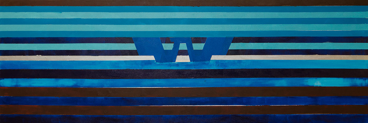 This artwork is 20 inches by 60 inches in length.  For the background I wanted to use colors that depict a Waylon Jennings style.   Shades of blues became the obvious choice to portray his rough blue jean look.  Looking for another color that choice became obvious: brown, for it is hard to ignore Waylon’s full head of hair. As a nice contrast I added a strip of Silver which I see around the rim of his hats. I also added to the background my own stylized version of Waylon’s logo, which you see it in many of his videos.